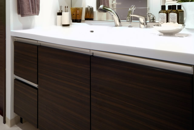最新の洗面化粧台は汚れが付きにくい素材と、掃除しやすい形状で、いつも清潔を保てます。